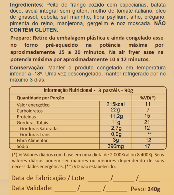 Pastel de Frango para Assar – Bandeja com 8 unidades SEM GLÚTEN/LÁCTEOS